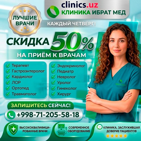 СКИДКА 50% на консультации врачей по четвергам — акция, которую нельзя пропустить в Ibrat Med!