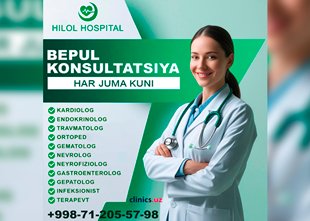BEPUL KONSULTATSIYA — har juma kuni Hilol Hospital klinikasida sizni kutmoqda!