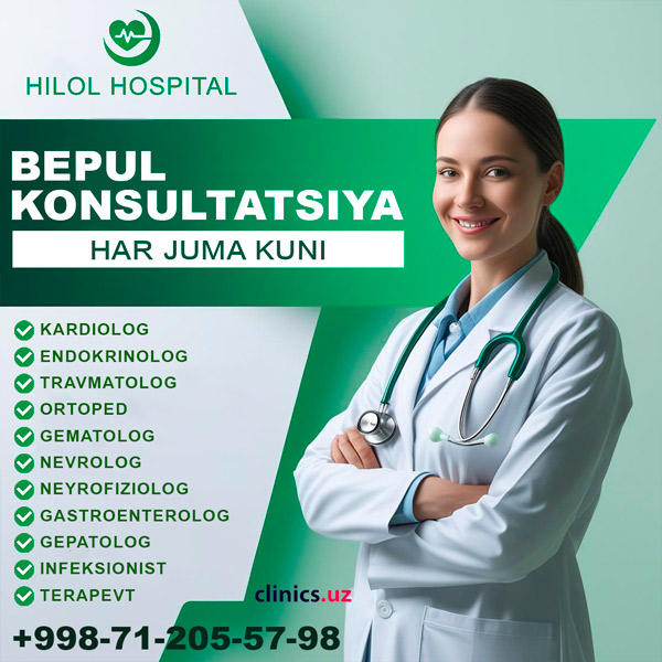 BEPUL KONSULTATSIYA — har juma kuni Hilol Hospital klinikasida sizni kutmoqda!