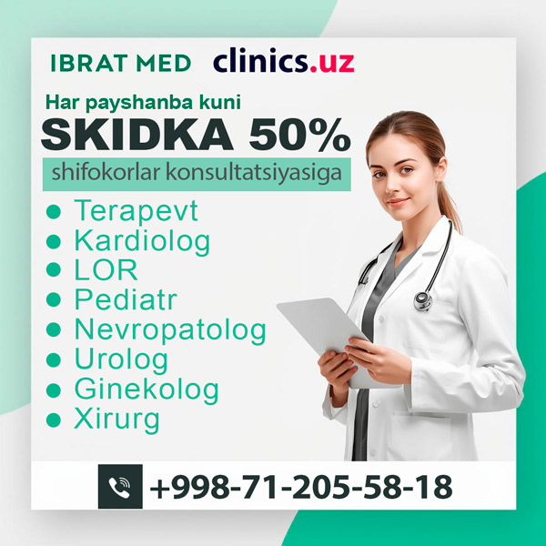SKIDKA 50% shifokorlar konsultatsiyasiga — har payshanba kuni Ibrat Med klinikasida!
